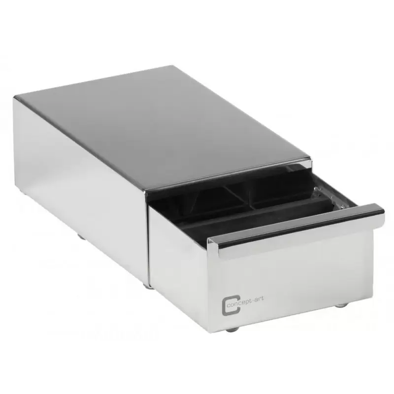 Dimensions (L x H x P en CM) 13x8x22 Type d’accessoires Bac / Tiroir à marc Largeur 13 cm Hauteur 8 cm Profondeur 22 cm Numéro d’article DMINI Quelques détails :La Barre de Knock est en aluminium solide et recouverte de silicone de qualité alimentaireConstruction lourde en acier inoxydableGlissière intérieur3 pieds en caoutchouc solides et amortissement des chocs et du bruit !