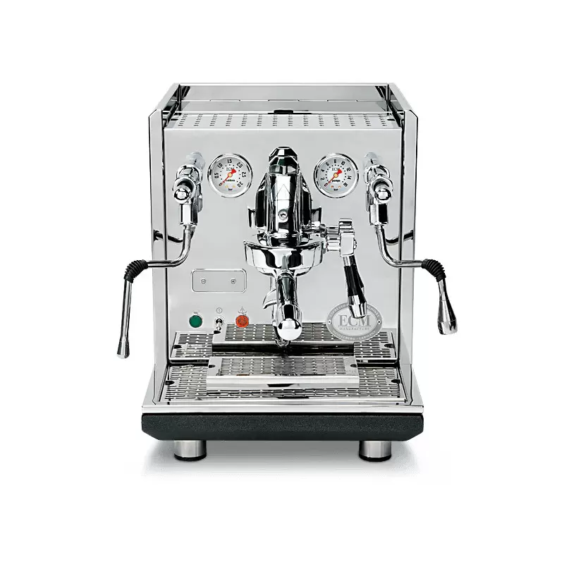 *En cas de rupture de stock de l’un des produits, nos équipes le remplaceront par un autre d’une valeur équivalente ou supérieure. *En cas de rupture de stock de l’un des produits, nos équipes le remplaceront par un autre d’une valeur équivalente ou supérieure. Bac à eau ( en litre ) 2,8 Type de groupe Groupe E61 breveté ECM Type de broyeur Non PID Oui Connexion au réseau d’eau Oui Type de pompe Rotative Chaudière(s) 2 chaudières Buse vapeur Oui Buse eau chaude Oui Backflush Oui Diamètre du panier 58 mm Boissons lactées Oui Poids 35 kg Numéro d’article 86274 Code EAN 4260013823409 Cafés x2 Cappuccino Mousse de lait Expresso x2 Expresso Macchiato Latte Macchiato Café Latte Ristretto x2 Description Cette Synchronika Version 2 intègre plusieurs évolutions technologiques au service de votre plaisir café !Bien que compacte, elle intègre une seconde chaudière dédiée à l’eau chaude et à la vapeur. D’une capacité de 2.1 litres, elle permet d’envisager dans les meilleures conditions, la pratique de l’art du Barista. Toutes les boissons café et mousse de lait seront à votre portée grâce à la buse vapeur dédiée.Tout d’abord, le PID intègre à présent un mode d’économie d’énergie. La machine peut maintenant être programmée pour s’éteindre avec un timer réglable de 0 à 600 minutes. Un rappel automatique de nettoyage de groupe est aussi intégré ainsi qu’une sécurité rappelant à l’utilisateur de remplir la chaudière avant la première utilisation, pour éviter tout dommage à la chaudière.Une valve de drainage de la chaudière a été installée afin que l’eau contenue dans la chaudière ne soit pas soumise au gel, notamment dans le cadre du transport de la machine. Pour finir sur les avancées technologiques de cette V2, la chaudière dédiée à la vapeur peut maintenant monter à 132°C afin d’augmenter considérablement sa capacité de production de vapeur. Par-ailleurs, le seuil de sécurité de la valve a été monté de 2.0 à 2.5 bars afin de s’accomoder de cette montée de température. Elle présente les atouts suivants :- La chaudière du groupe café, isolée, est en acier inoxydable, permettant un temps de chauffe rapide (de l’ordre de quelques minutes). Sa puissance est de 1000 Watts sa contenance de 0.75 litre. – La chaudière dédiée à la l’eau chaude et à la vapeur, isolée, est également en acier inoxydable. Sa puissance est de 1200 Watts et sa contenance est de 2.1 litres. – La pompe est une pompe rotative, plus silencieuse qu’une vibrante. – La cloche du groupe E61 est en acier, modèle breveté par ECM.- Les deux manomètres en façade, répartis à gauche et à droite du groupe, indiquent la pression de la pompe et la pression de la chaudière du groupe café. – L’accès rapide à la soupape de détente pour un réglage personnalisé de la pression.- La lance vapeur est protégée de la chaleur pour faire mousser le lait en toute sécurité : sa rotule (angle 70°) permet d’utiliser toutes les tailles de pichets et sa buse est pourvue de 2 trous.- La lance pour l’eau chaude est elle aussi protégée de la chaleur et raccordée à la machine par une rotule bien pratique (angle 70°). – La commande d’ouverture de la vapeur et de l’eau chaude se font par un bouton de type joystick : lorsqu’il est poussé, l’eau et la vapeur sont délivrés, jusqu’au relâchement du joystick. Ils sont tous deux isolés de la chaleur. Le joystick peut rester en position ouverte. – Son fonctionnement est simplifié grâce à son unique bouton à levier présent en façade; celui-ci permet d’allumer et d’éteindre la machine. Un bouton à bascule sous et derrière le bac de la machine permet d’enclencher ou non la chauffe de la chaudière vapeur. Une fois enclenché en position chauffe, il suffira d’éteindre et d’allumer la machine à l’aide du levier en façade. Deux voyants en façade permettent de connaître l’état de chauffe des deux chaudières. – Le PID qui équipe cette machine affiche digitalement la température des deux chaudières et en permet le réglage individuellement. Il affiche également le temps d’extraction depuis le déclenchement jusqu’à l’abaissement du levier. Il peut être programmé pour rappeler à l’utilisateur l’entretien du groupe. Les intervalles de nettoyage sont programmables. Il peut également être désactivé. – La machine s’arrête elle-même par sécurité en cas de volume d’eau trop faible dans le réservoir. Cependant, elle terminera la boisson en cours de préparation avant de s’éteindre. – Les pieds sont en acier inoxydable. – Les tubes transportant l’eau dans la chaudière sont en cuivre pour une meilleure durée de vie des composants. – Son poids de 35.5 kg lui confère une robustesse à toute épreuve; son carénage est en acier inoxydable et le chassis de la machine est revêtu d’une poudre anthracite ayant pour effet de visiuellement séparer la partie machine de son chassis. Ses dimensions font : L335 mm x P490 mm x H410 mm. – Le réservoir à eau de 2.8 litres est déposable pour un remplissage et un entretien facilité. – Le raccordement au réseau d’eau est possible et facilité par un simple bouton à basculer et une vanne à tourner. – Le bac à eau résiduel pour lui-aussi être raccordé à une évacuation externe. A noter qu’il est équipé d’une grille sur-élevée pour rapprocher les tasses à expresso. – Les portes-filtres ont un diamètre de 58 mm ; un simple et un double sont fournis, ainsi qu’un filtre aveugle pour le back-flushing Sont fournis avec la machine :- 1 porte filtre 1 tasse & 1 porte filtre 2 tasses- 1 filtre 1 tasse & 1 filtre 2 tasses- 1 filtre aveugle- 1 tamper flat base – 1 tuyau métallique 1/8″ 3/8″ – 1 brosse de nettoyage – 1 demi-tasse grid – 1 tuyau d’évacuation- 1 mode d’emploi ECM Expresso Coffee Machine, un peu d’h